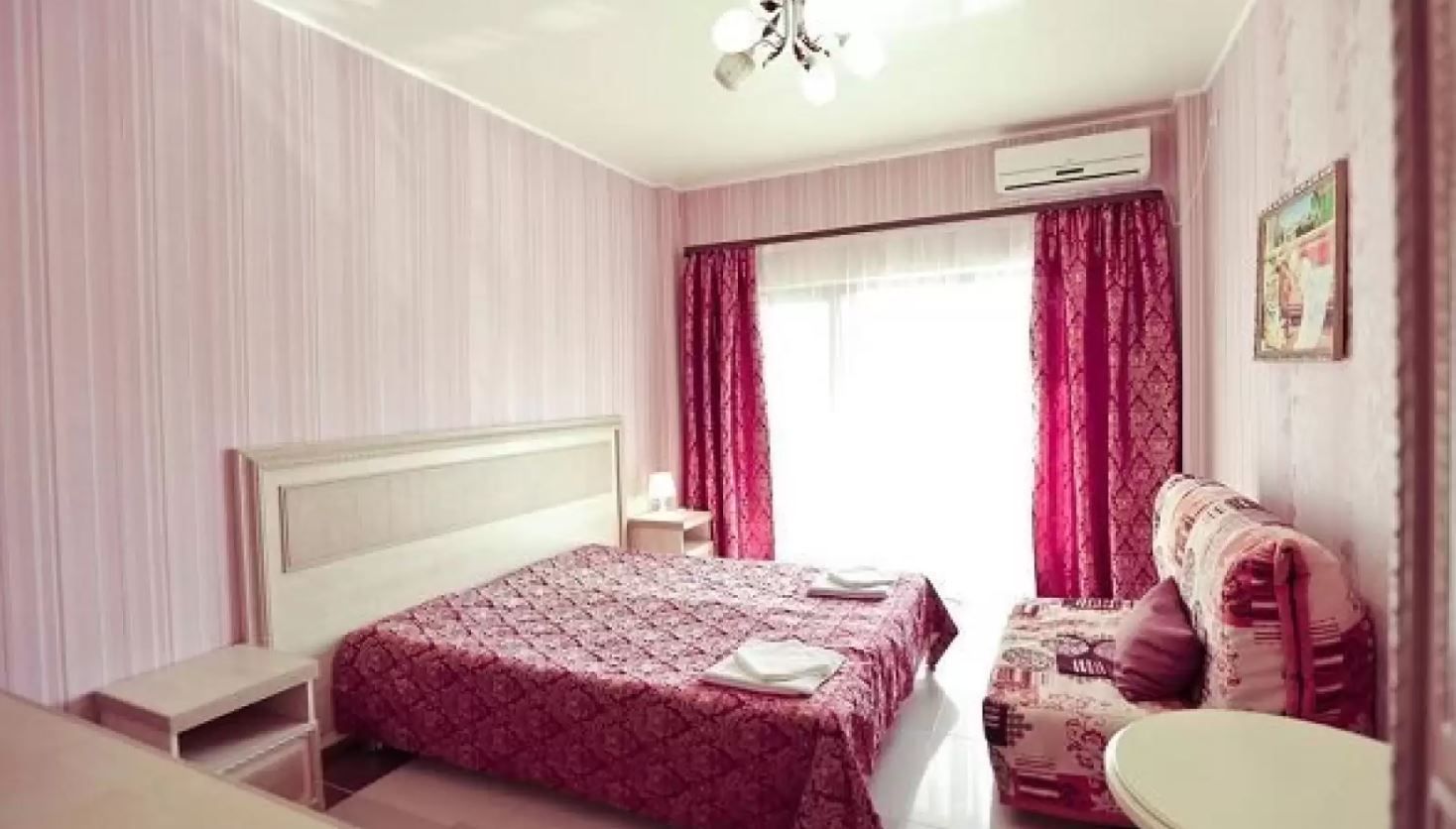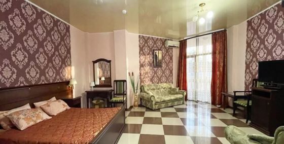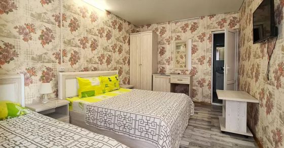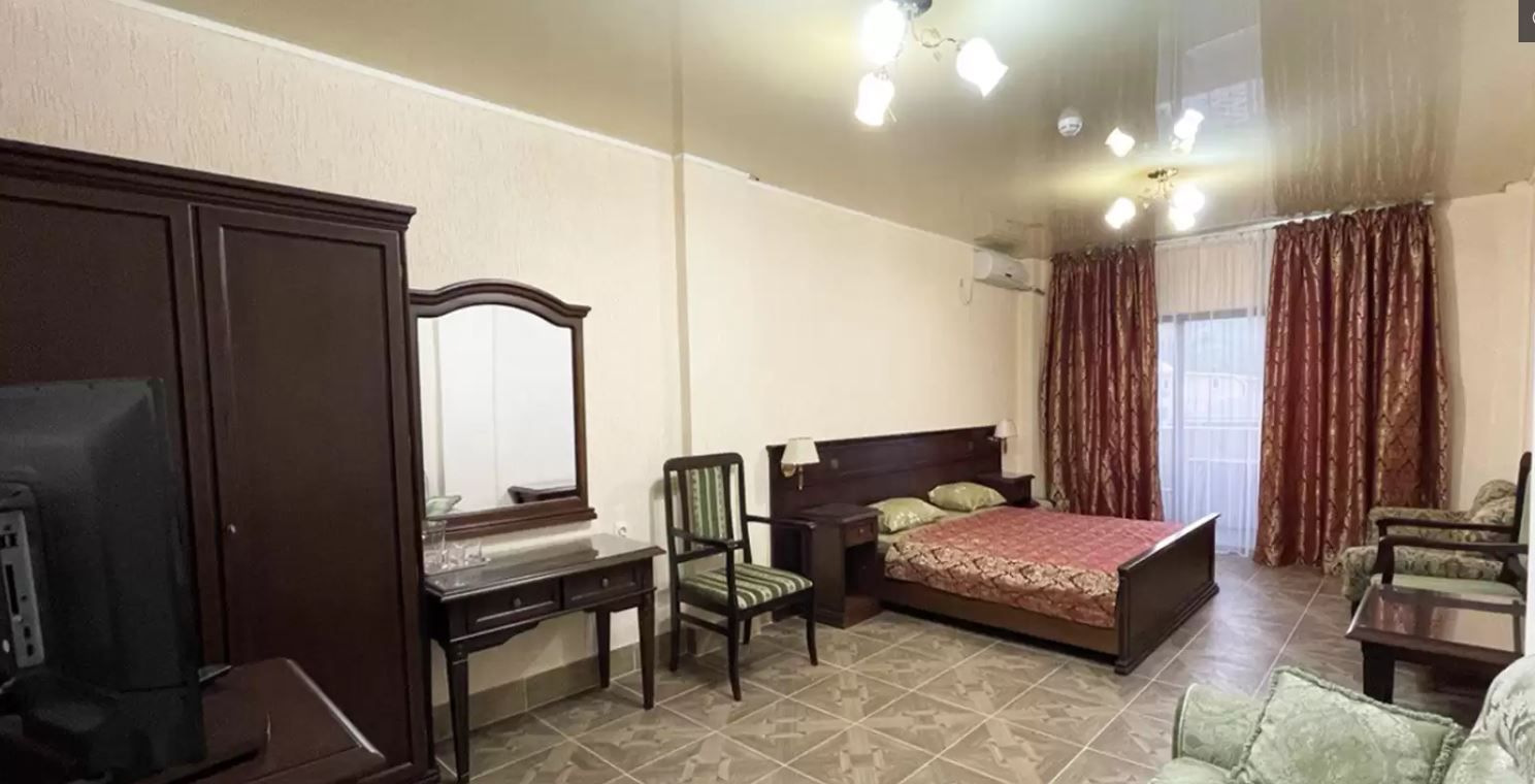 4-х местный номер «Комфорт» (отель «Гранат»): двуспальная и/или односпальные кровати, диван, кондиционер, телевизор, холодильник, санузел в номере, балкон.