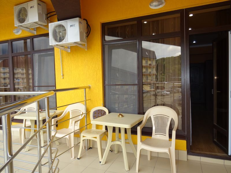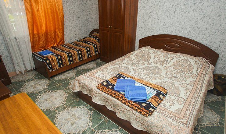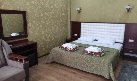 2-х, 3-х, 4-х местный номер "Стандарт": односпальная и двуспальная кровати, диван-кровать, пуфики, шкаф, прикроватные тумбочки, журнальный столик, вешалка, зеркало, кондиционер, телевизор, холодильник, спутниковое ТВ, эл. чайник, интернет, балкон, душ и туалет в номере.