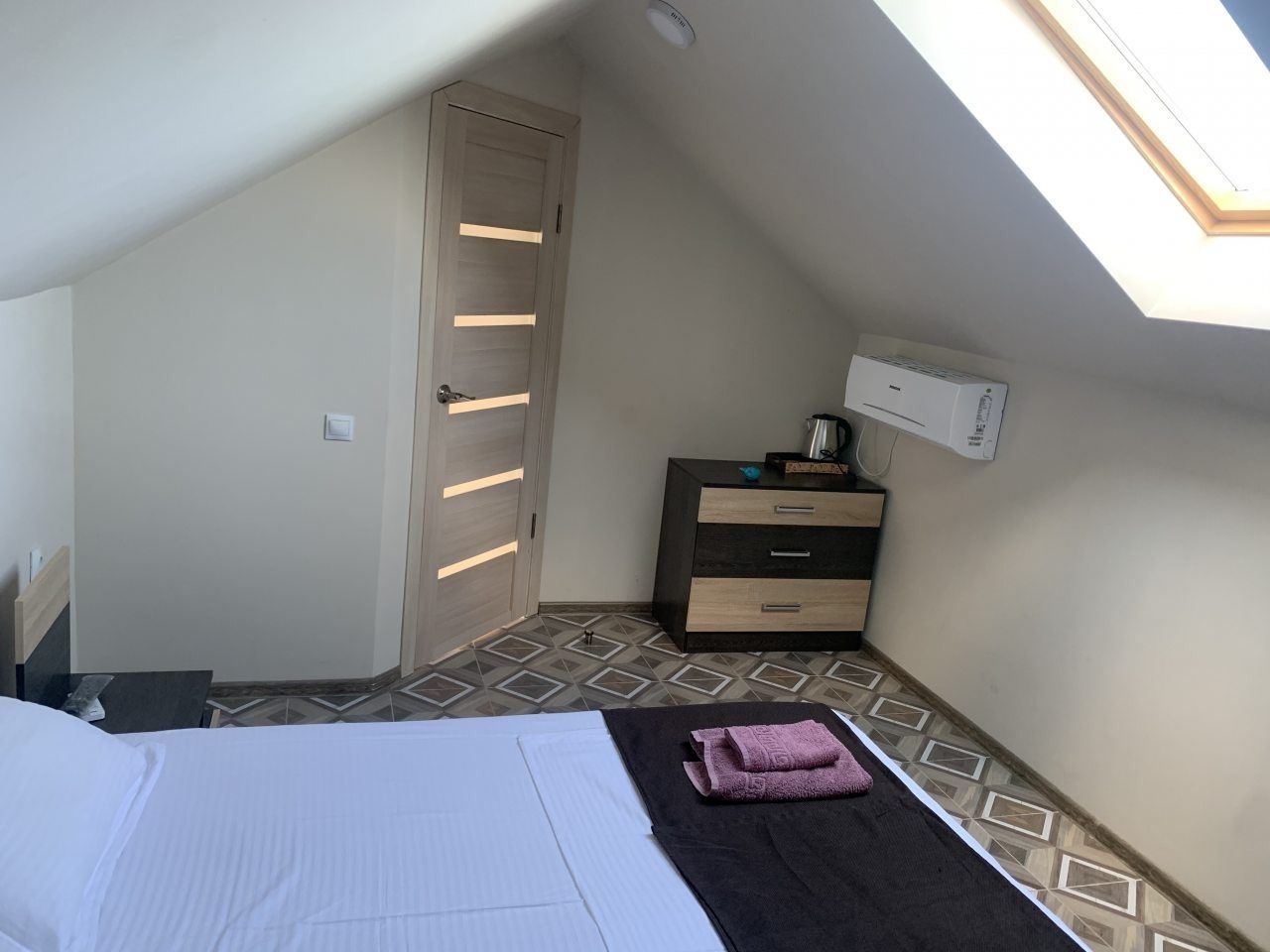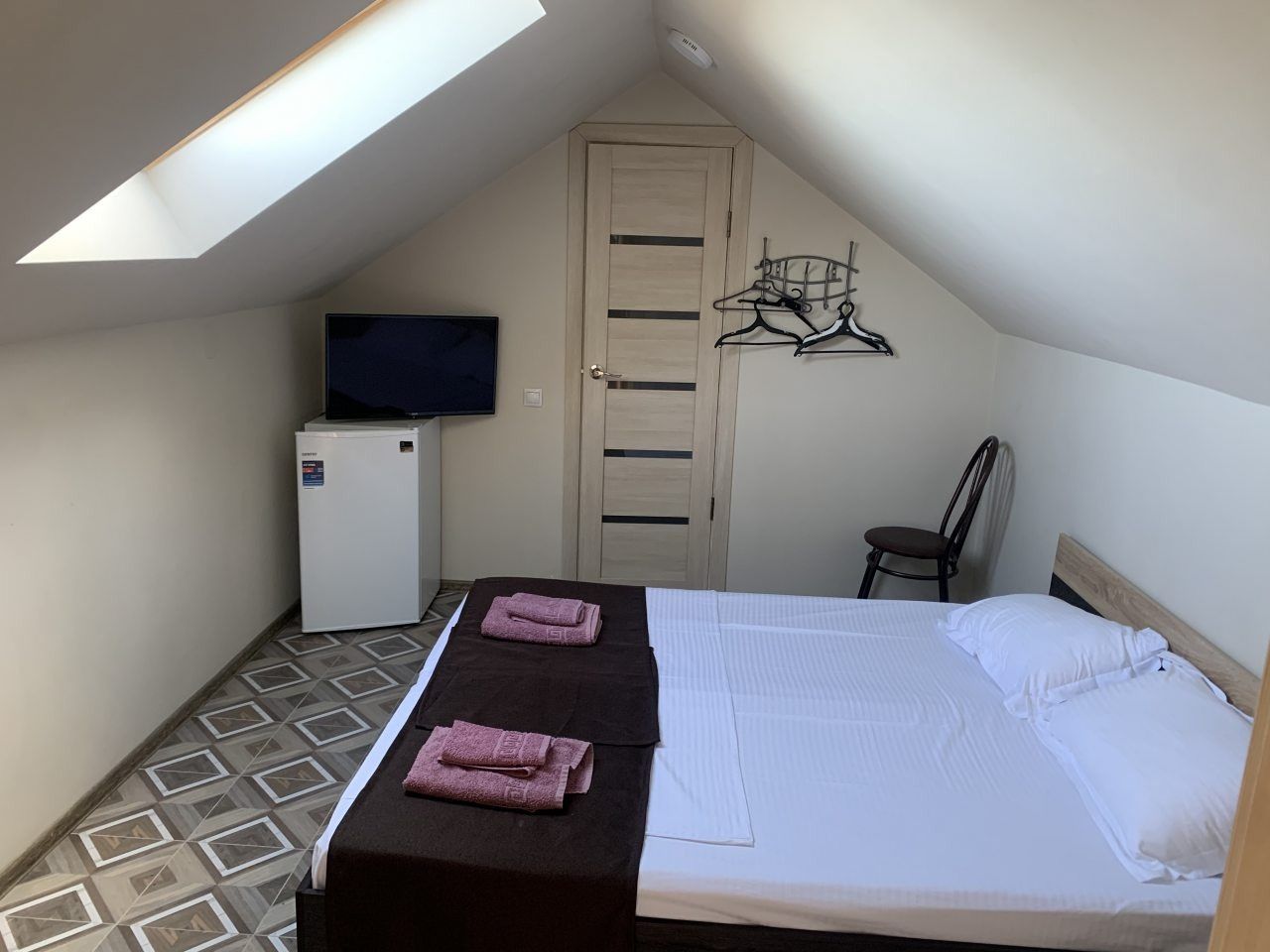 2-х местные номера «Мансарда» В номере необходимая мебель, кровати, кондиционер, телевизор, Wi-Fi, холодильник, чайник. Санузел в номере.