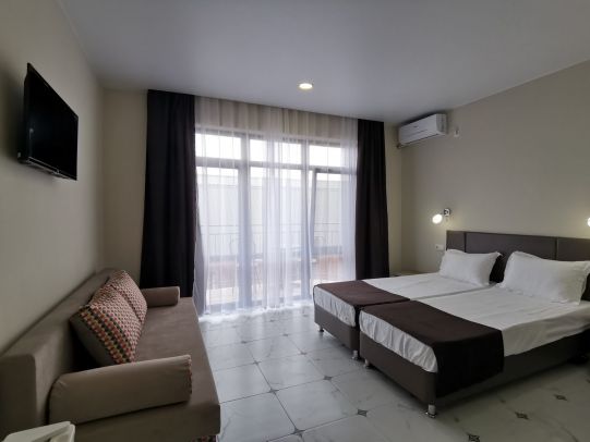 Гостевой дом «МАЙАМИ ХАУС» - новый современный гостевой дом постройки 2021 года на первой береговой линии. Всего 106 шагов через дорогу и сразу пляж 117, где есть две волейбольные площадки, батуты для детей, водные аттракционы. Для комфортного отдыха гостей просторный озеленённый двор с беседкой и кухней. На просторном дворе настоящая зелень, а для удобного времяпровождения на территории двора много приятных плюшек: детский комплекс и игрушки, каркасный бассейн, лавочки, шезлонги, гамак и даже кресло качалка. Есть и место для курения кальяна.