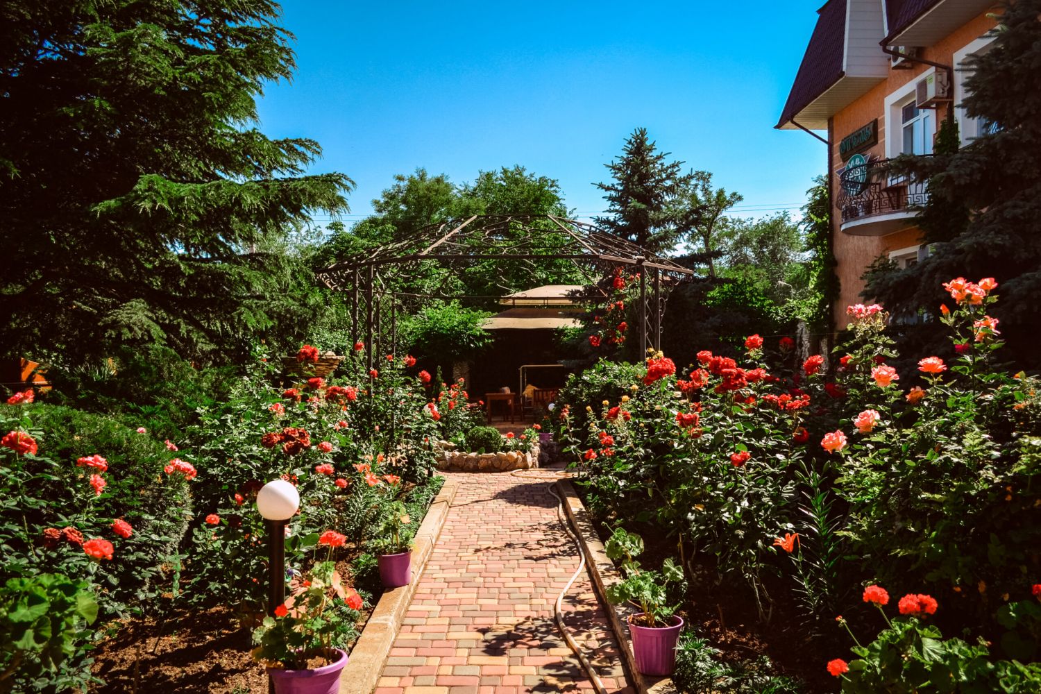 Отель «Киви» расположен в живописном месте в центре Феодосии! Гостиница окружена алыми розами, уникальными крымскими деревьями и вечно-зелеными кипарисами. Большая зеленая территория, собственный сквер с декоративной растительностью только подчеркивают прелести нашего маленького замка. На территории оборудованы беседки и зоны для отдыха. Все смогут приготовить еду на мангале и насладиться уютом природы в центре старинной Феодосии. Большим преимуществом нашего отеля является возможность посещения собственного закрытого пляжа с бесплатным использованием шезлонгов и зонтиков. Ну а если Вы хотите насладиться Черным морем в центре Феодосии, то дорога до пляжа займет у Вас не более 10 минут.