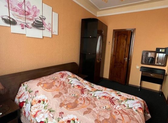 2-х местные номера «Стандарт»: двуспальная кровать, стол, стулья, шкаф, прикроватные тумбочки, зеркало, тумбочка, сейф, телевизор, холодильник, кондиционер, санузел в номере.