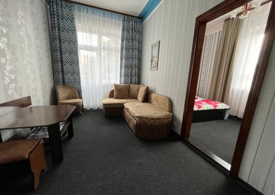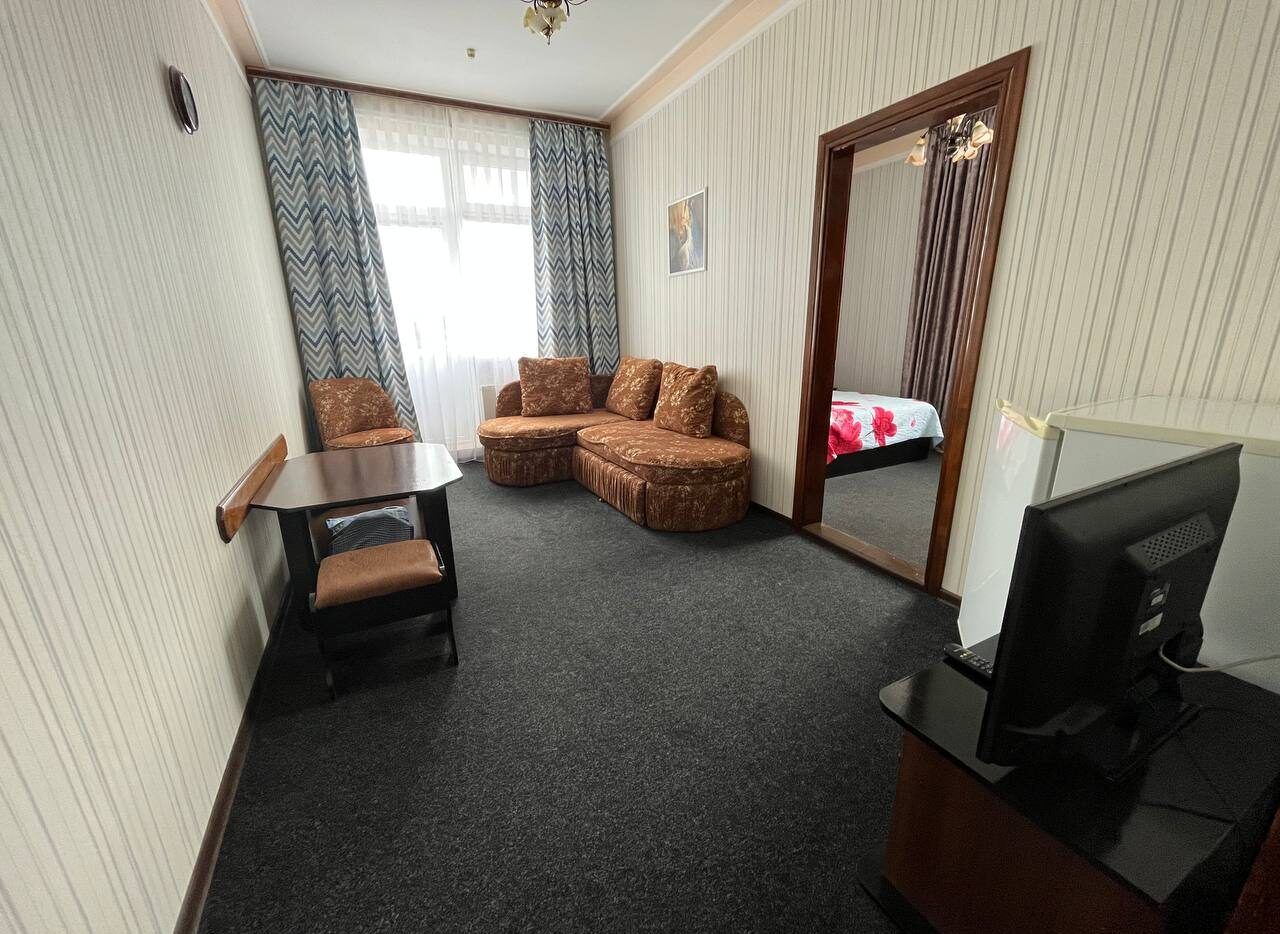 4-х местные 2-х комнатные номера «Стандарт»: двуспальная кровать и двуспальный диван, стол, стулья, шкаф, прикроватные тумбочки, зеркало, тумбочка, сейф, телевизор, холодильник, кондиционер, санузел в номере.