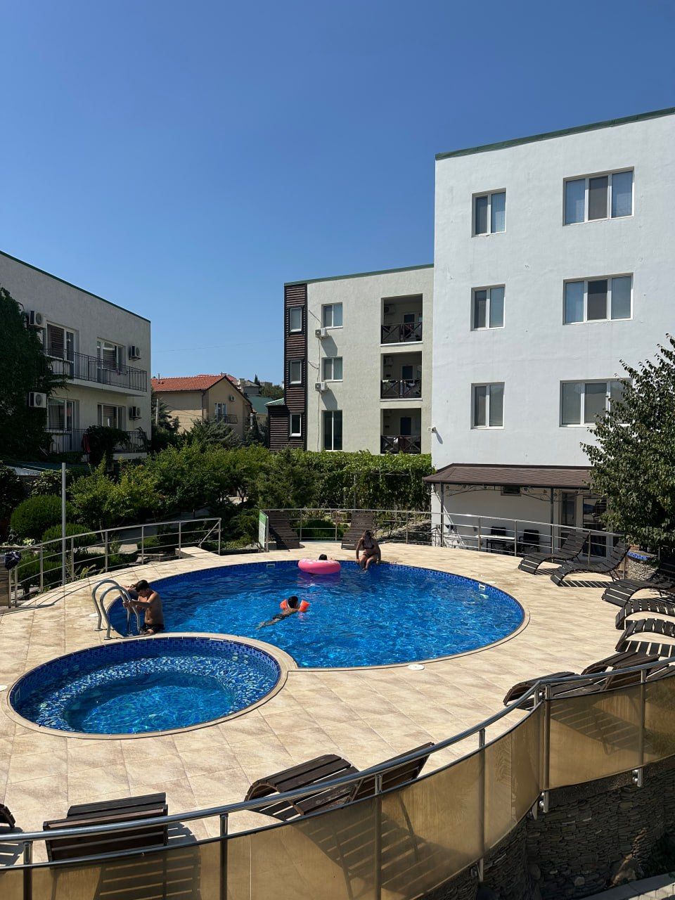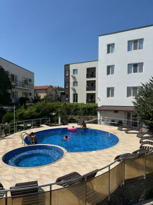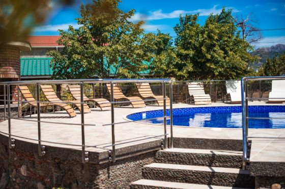 Гостевой дом «Лоза» находится в самом центре города Судак полуострова Крым. Для удобства приготовления собственной пищи предусмотрена общая кухня, оснащенная бытовой техникой и необходимой посудой. На территории расположен великолепный сад и зона барбекю. Неподалеку есть: чистый пляж с выходом к морю, прокат велосипедов, исторический музей, рынок и магазины. На территории большой взрослый бассейн +детская зона с шезлонгами, большая беседка (в ней микроволновка, термопот с постоянно горячей водой).