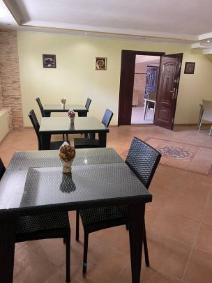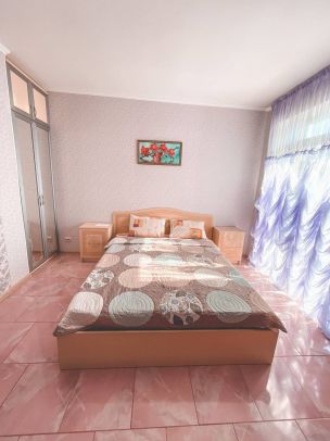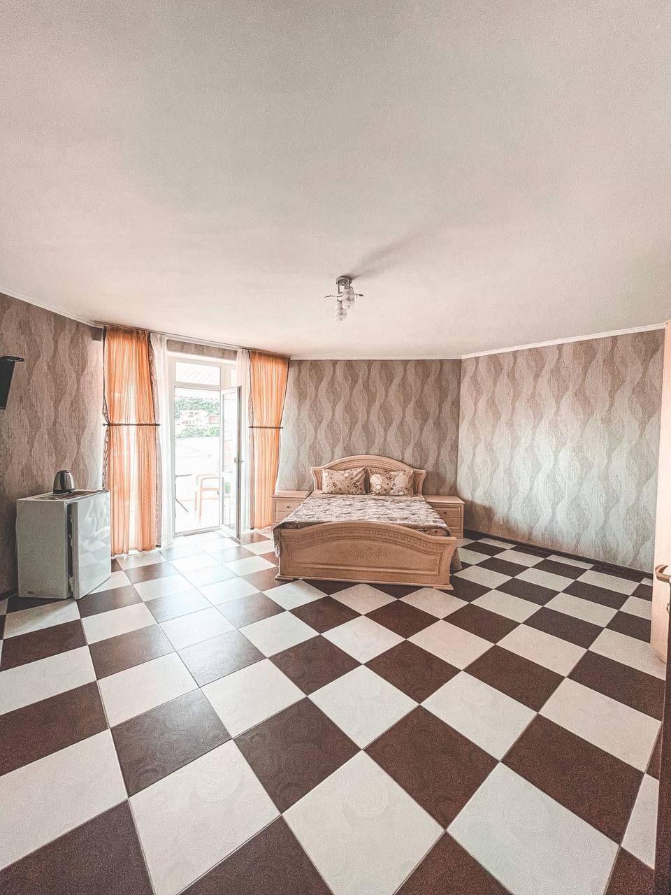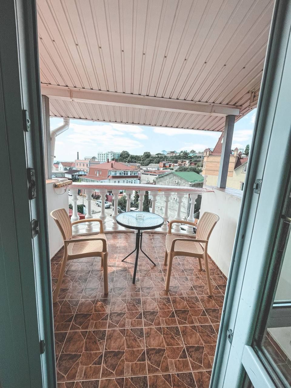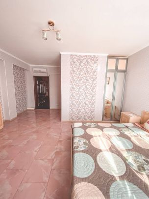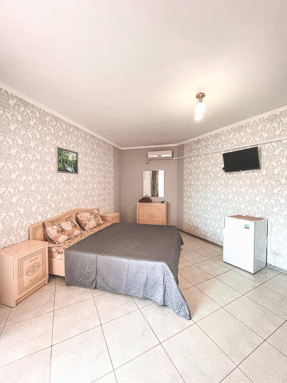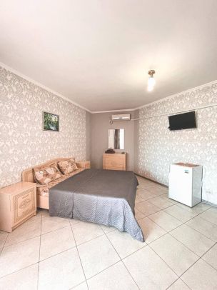 Двухкомнатный номер: В номере санузел, двуспальная кровать, 2 односпальные кровати, мебель, холодильник, 2 телевизора, интернет, кондиционер, балкон, столик и стулья.